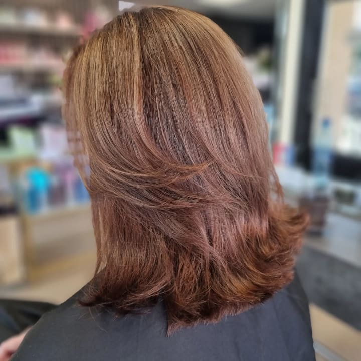 Farge, hårlengder ned til skulderbladene. Vask og føning inkludert.